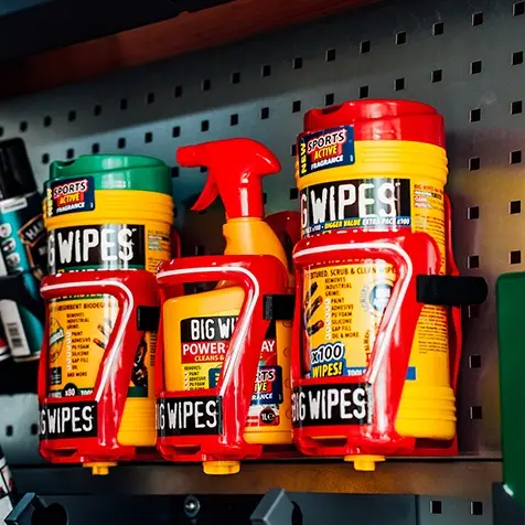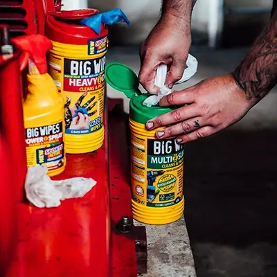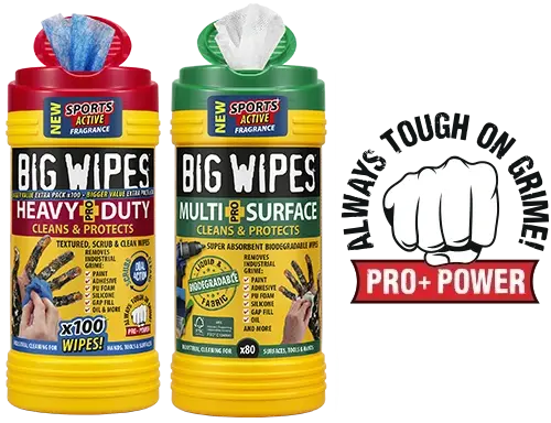 Offering professional tradespeople an all-in-one cleaning solution for hands, tools and surfaces. BIG WIPES not only efficiently remove the toughest grime, they also contain four great skin conditioners, which help to nourish and protect the skin.