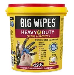 Heavy-Duty wipes incorporate the latest high adhesion web technology with an innovative dual-sided scrub and clean fabric. The abrasive side scrubs off the most stubborn grime and dirt, while the smooth side soaks it all up in the quickest time. Furthermore, the firm grip, no slip textile ensures reduced slippage, high tear resistance and no pilling.