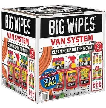 This is where the NEW Big Wipes Van System comes in. This all-in-one racking and dispensing solution contains all the Big Wipes essentials you need to fix problems fast, clean up quickly and effectively and get to the next job, in one handy kit.
